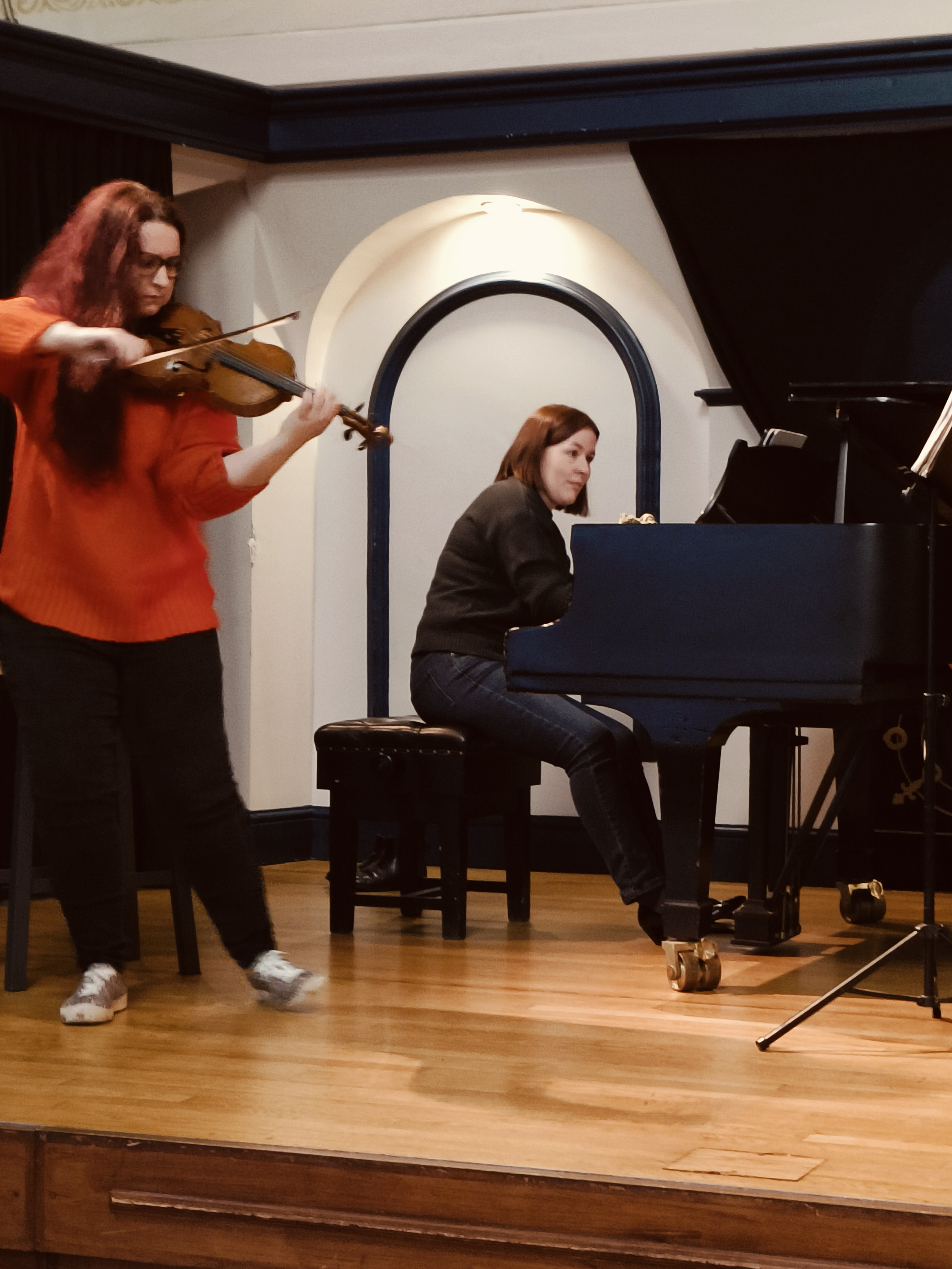 "Amy’s exemplary and responsive piano playing provided the perfect foil for Katy’s ardent bowing and deft finger work. Amy made full use of the Grimsby Town Hall Steinway piano – always maintaining a perfect balance with the violin. Katy fully employed her violin, made about 1720 by the English maker Daniel Parker, drawing and strongly projecting full rich tones from it...Both players clearly enjoyed Ravel’s blue’s influenced Sonata for Violin and Piano (No.2). In a demanding and at times devilish violin part, Katy oozed skill and musicality, supported by Amy’s no less demanding piano part that saw at times a musical battle between them – of which they were jointly victorious!"